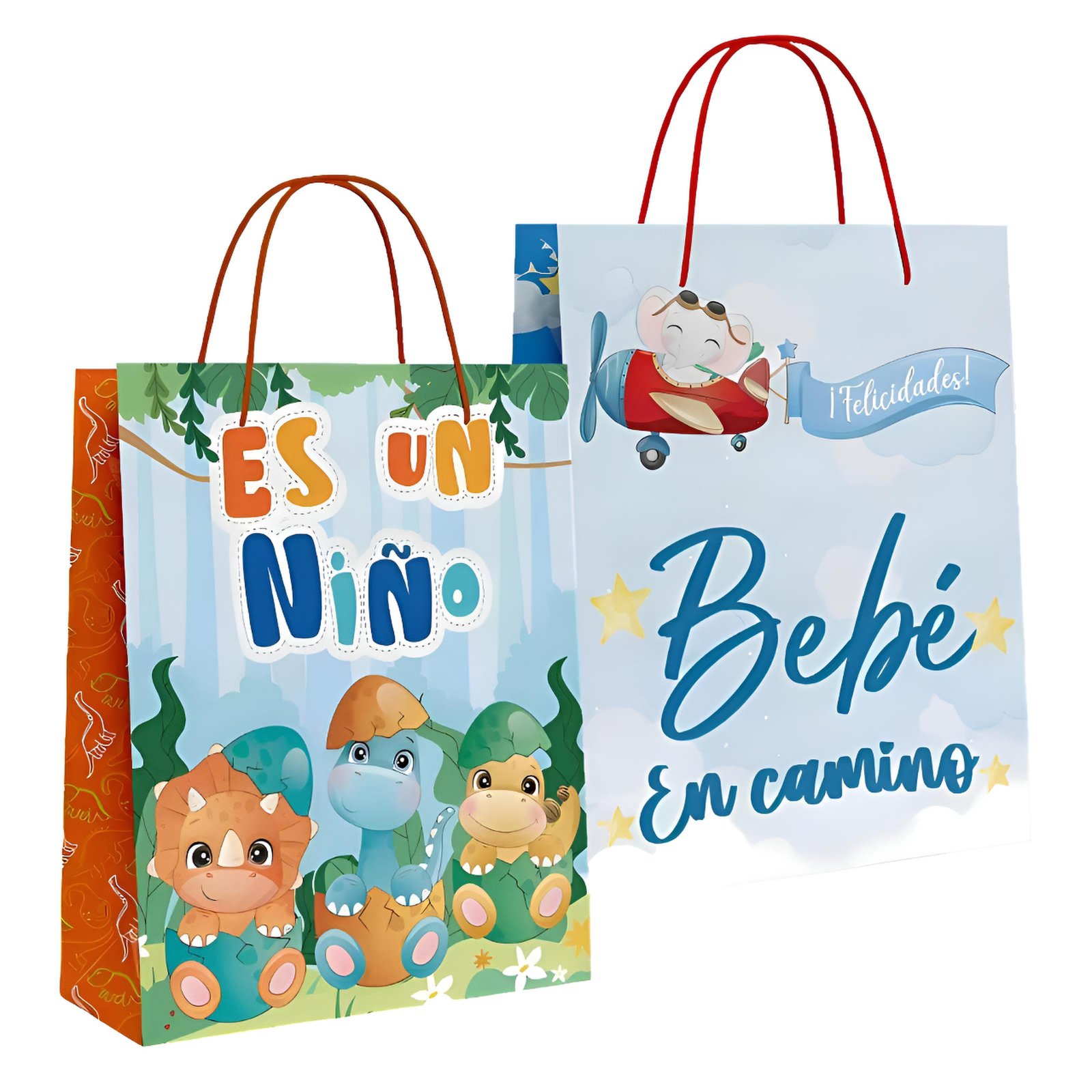 Estas bolsas no son solo un envoltorio; son un recuerdo del momento especial que estás celebrando. Elige entre la aventura de la selva o el viaje por el cielo para dar el regalo perfecto al nuevo integrante de la familia.