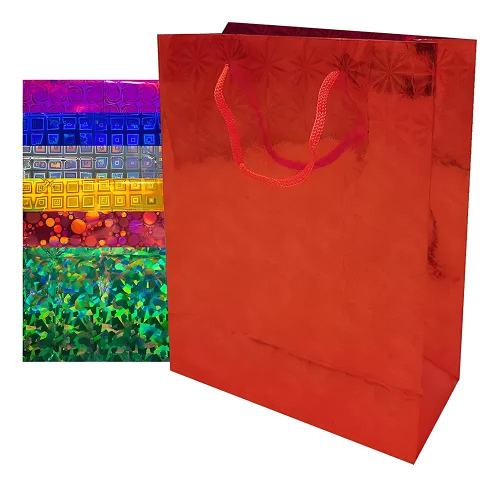 El material holográfico no solo es llamativo, sino que también es resistente, lo que garantiza que tu regalo llegue seguro. Las asas de cordón de alta calidad complementan el diseño y facilitan el transporte, incluso de los regalos más pesados.