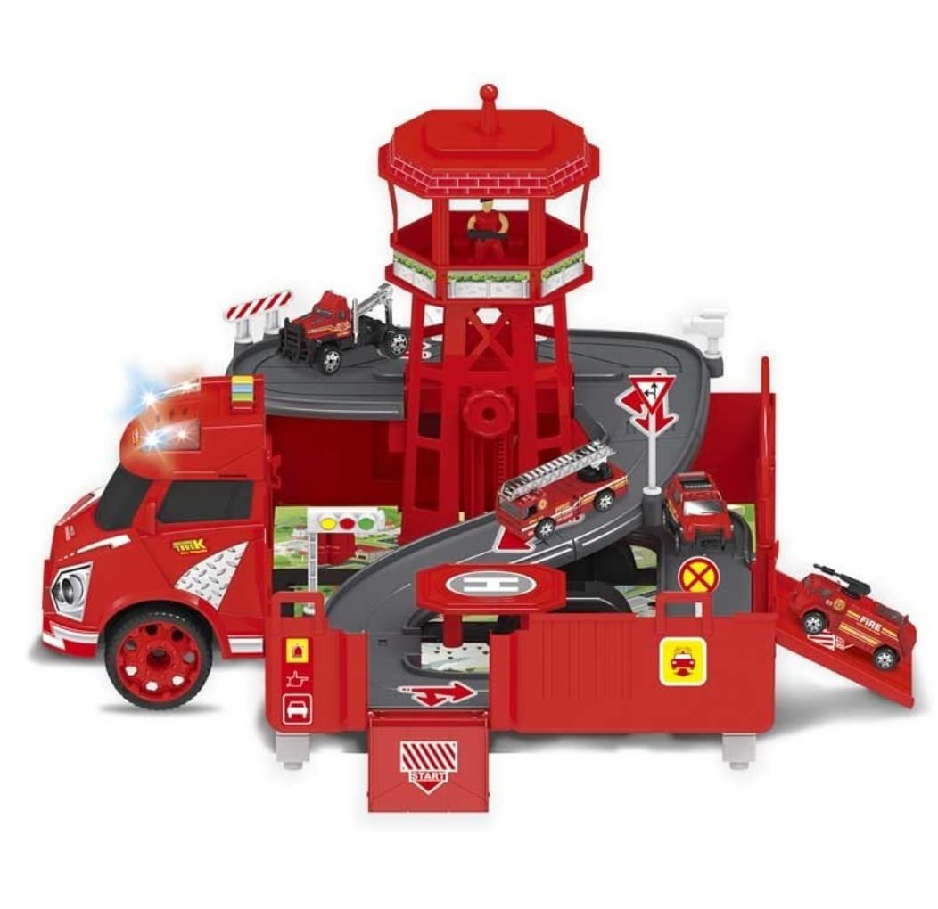 Imagina un camión de gran tamaño que se despliega para revelar un parqueadero de varios niveles con rampas de acceso, una estación de servicio y, lo más emocionante de todo, ¡un helipuerto en la parte superior! Este centro de mando sobre ruedas es el escenario perfecto para que los pequeños conductores y pilotos creen sus propias historias de rescate, carreras y misiones secretas.