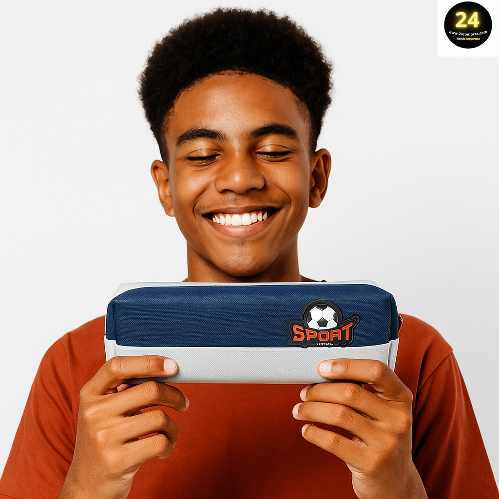 ¡Lleva la diversión al salón de clases con esta cartuchera Offi-Esco! Su diseño vibrante con un control de videojuegos y personajes pixelados es perfecto para los amantes del gaming. Es práctica, espaciosa y duradera, ideal para guardar todos tus lápices, bolígrafos y marcadores. ¡Que empiece el juego y que tus útiles escolares reflejen tu pasión por los videojuegos!
