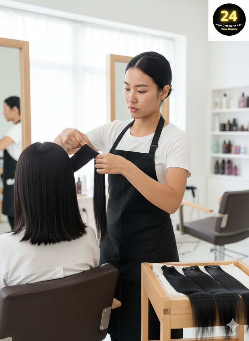 Lavado: Utiliza champú y acondicionador suaves. Lava las extensiones con agua tibia y evita frotarlas; en su lugar, peina suavemente con los dedos de arriba hacia abajo para eliminar enredos.