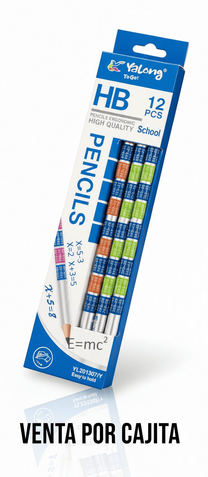 Los lápices HB de Yalong To Go! no solo están diseñados para escribir, sino también para aprender. Con un diseño ergonómico y de alta calidad, cada lápiz es una herramienta educativa disfrazada de instrumento escolar. Revestidos con fórmulas matemáticas, operaciones básicas y multiplicaciones, estos lápices convierten el estudio en una experiencia interactiva y divertida.