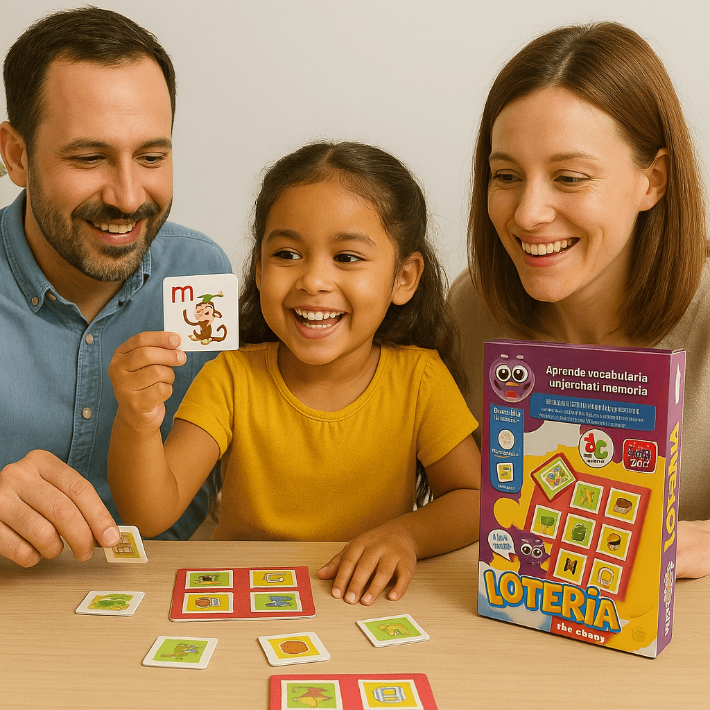 La Lotería Abecedario es un juego didáctico diseñado para facilitar el aprendizaje de las letras y el vocabulario en niños. A través del reconocimiento de objetos y figuras en los tableros, los pequeños asocian imágenes con las letras correspondientes, desarrollando habilidades lingüísticas, pensamiento lógico y percepción visual de una forma divertida. Algunas versiones del juego también incluyen los nombres en español e inglés, lo que lo convierte en una herramienta bilingüe.