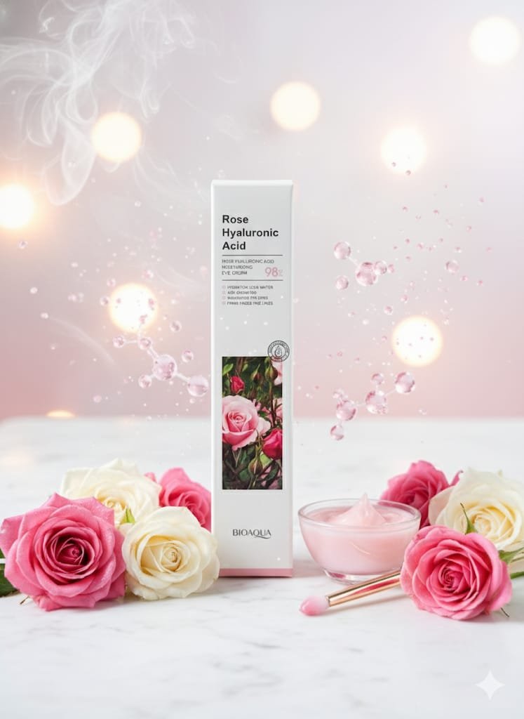 Esta es una crema de ojos formulada con Rosa y una alta concentración de Ácido Hialurónico al 98%. Se presenta en un envase elegante y su fórmula ligera está diseñada para el cuidado intensivo de la delicada piel alrededor de los ojos.
