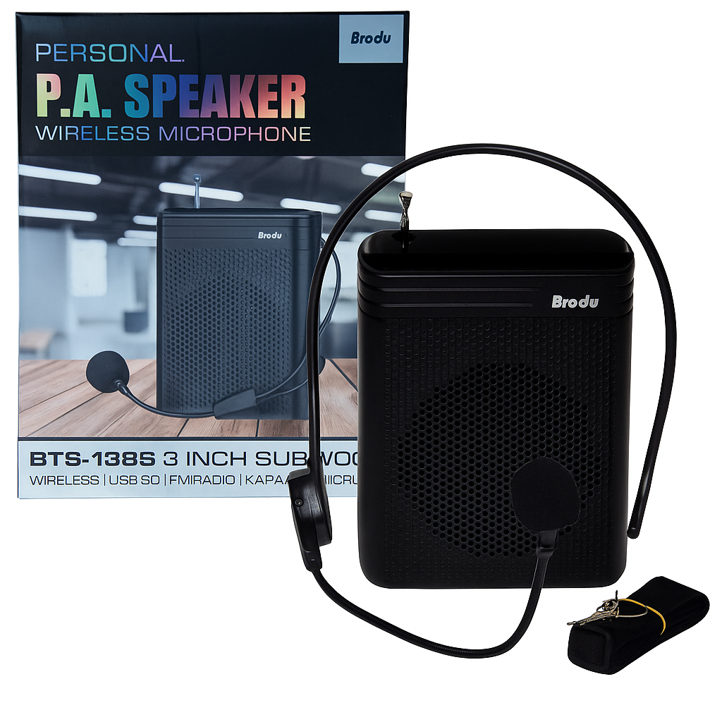 El parlante portátil BRODU BTS-1385 es una opción práctica y versátil para quienes buscan un sonido potente en cualquier lugar. A pesar de su tamaño pequeño, está equipado con un subwoofer de 3 pulgadas que ofrece graves profundos y una reproducción clara de la música. Incluye micrófono alámbrico para funciones de karaoke, presentaciones o reuniones, convirtiéndolo en un aliado ideal tanto para entretenimiento como para actividades profesionales.