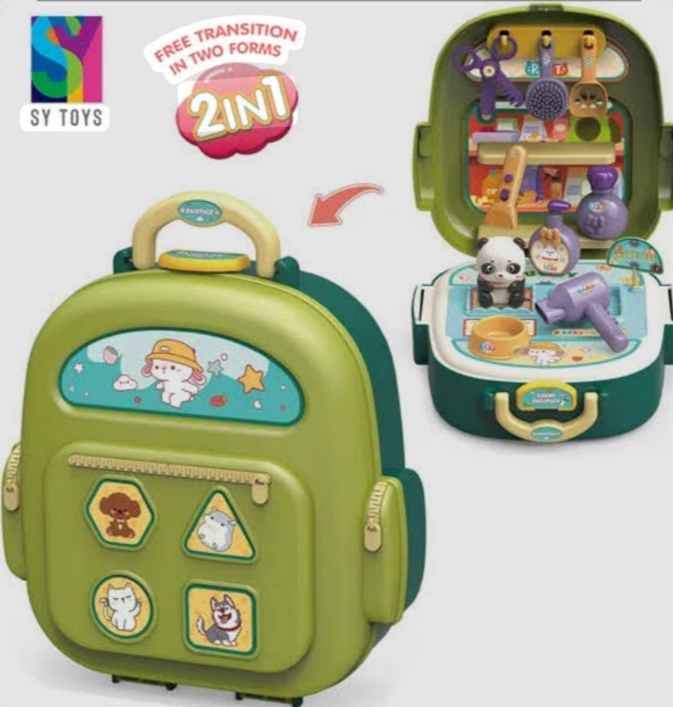 Este tipo de juguete es una versión compacta y transportable de un set de juego más grande. La "lonchera" es en realidad el estuche que, al abrirse, se transforma en un escenario de juego. Dentro de él, los niños encuentran figuras pequeñas de mascotas (perros, gatos, conejos), muñecos, y accesorios en miniatura como camas, cuencos de comida, juguetes o incluso escenarios de parques o clínicas veterinarias.