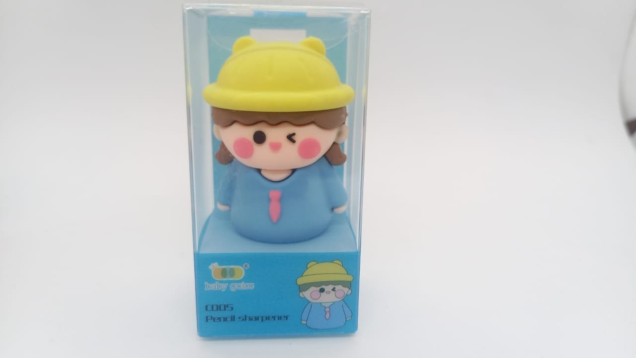 Este sacapuntas de diseño, parte de la línea "Baby Guitos", es una adición encantadora para cualquier escritorio, estuche o colección. La figura, vestida con un suéter azul y un sombrero amarillo con orejas de oso, presenta una expresión alegre que lo hace ideal para niños y adultos por igual. Además de su atractivo visual, es un sacapuntas funcional y duradero, perfecto para lápices de grafito y de colores. Su diseño detallado lo convierte en un artículo de papelería único y un excelente regalo.