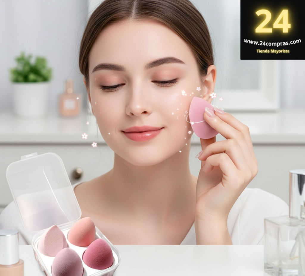 Consigue un acabado perfecto con este set de 4 esponjas profesionales en tonos rosados, ideales para aplicar base, corrector, rubor o polvos. Su textura suave y diseño ergonómico permiten difuminar el maquillaje de forma uniforme, sin líneas ni excesos.
