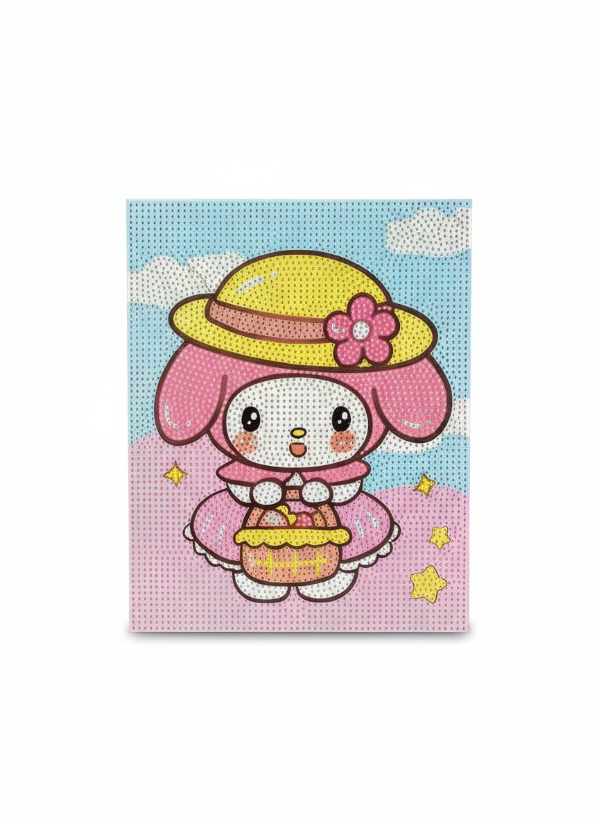 Lona/Lámina impresa: Con un diseño predefinido (ej. My Melody, My Little Pony) y símbolos que indican dónde colocar cada color de diamante.