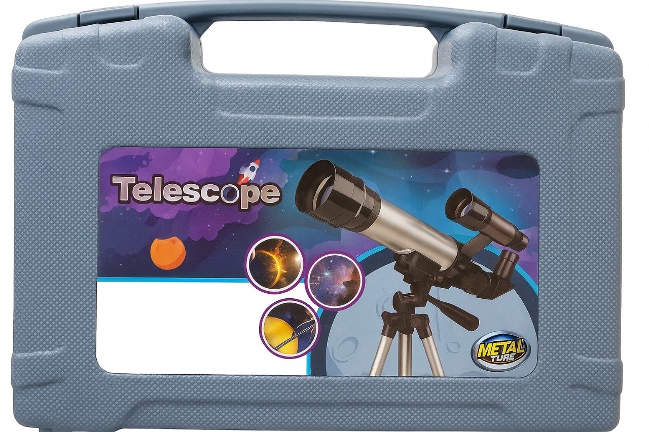 El set viene en un maletín de transporte de color gris, que no solo protege el telescopio, sino que también lo hace portátil. Esto permite que los pequeños científicos lleven su equipo a cualquier lugar, ya sea para observar la luna desde el patio trasero o para mirar las estrellas lejos de las luces de la ciudad.