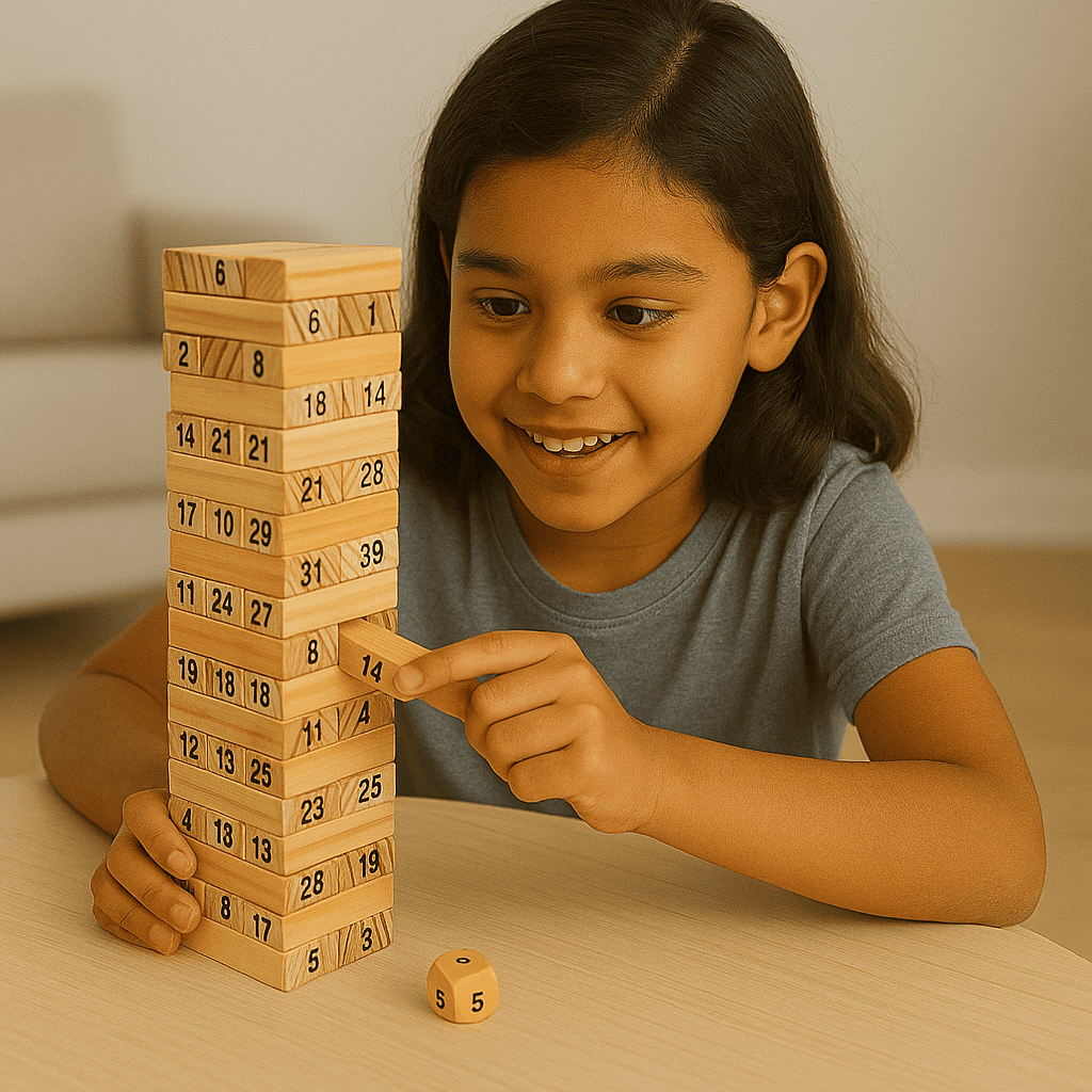 Objetivo del juego: Los jugadores se turnan para retirar un bloque de la torre y colocarlo en la parte superior sin que esta se caiga.