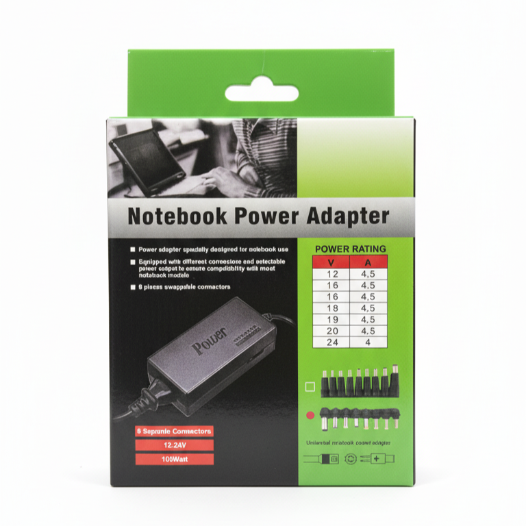 • Viene equipado con diferentes conectores y una salida de energía seleccionable para asegurar la compatibilidad con la mayoría de los modelos de portátiles.