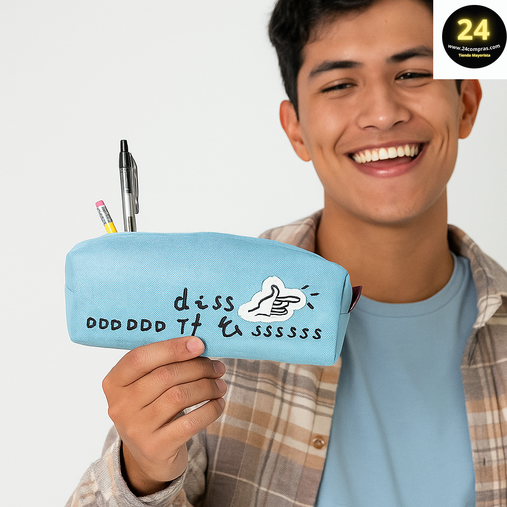 ¡Lleva un toque de rebeldía a tus clases con esta cartuchera de diseño único! Su estilo atrevido con el "pulgar hacia abajo" es perfecto para los que se toman la vida con humor. Más allá de su apariencia, es espaciosa y súper resistente, ideal para guardar todos tus lápices, bolígrafos y marcadores. ¡Que tus útiles hablen por ti y demuestren que tienes una personalidad única!