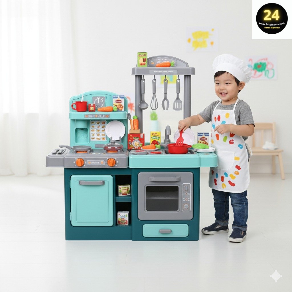Esta cocina infantil no solo es una fuente inagotable de diversión, sino que también es una herramienta educativa valiosa. Fomenta el desarrollo de habilidades sociales mientras interactúan con otros, mejora la motricidad fina al manipular los pequeños accesorios, y estimula el lenguaje y la imaginación mientras narran sus propias historias culinarias.