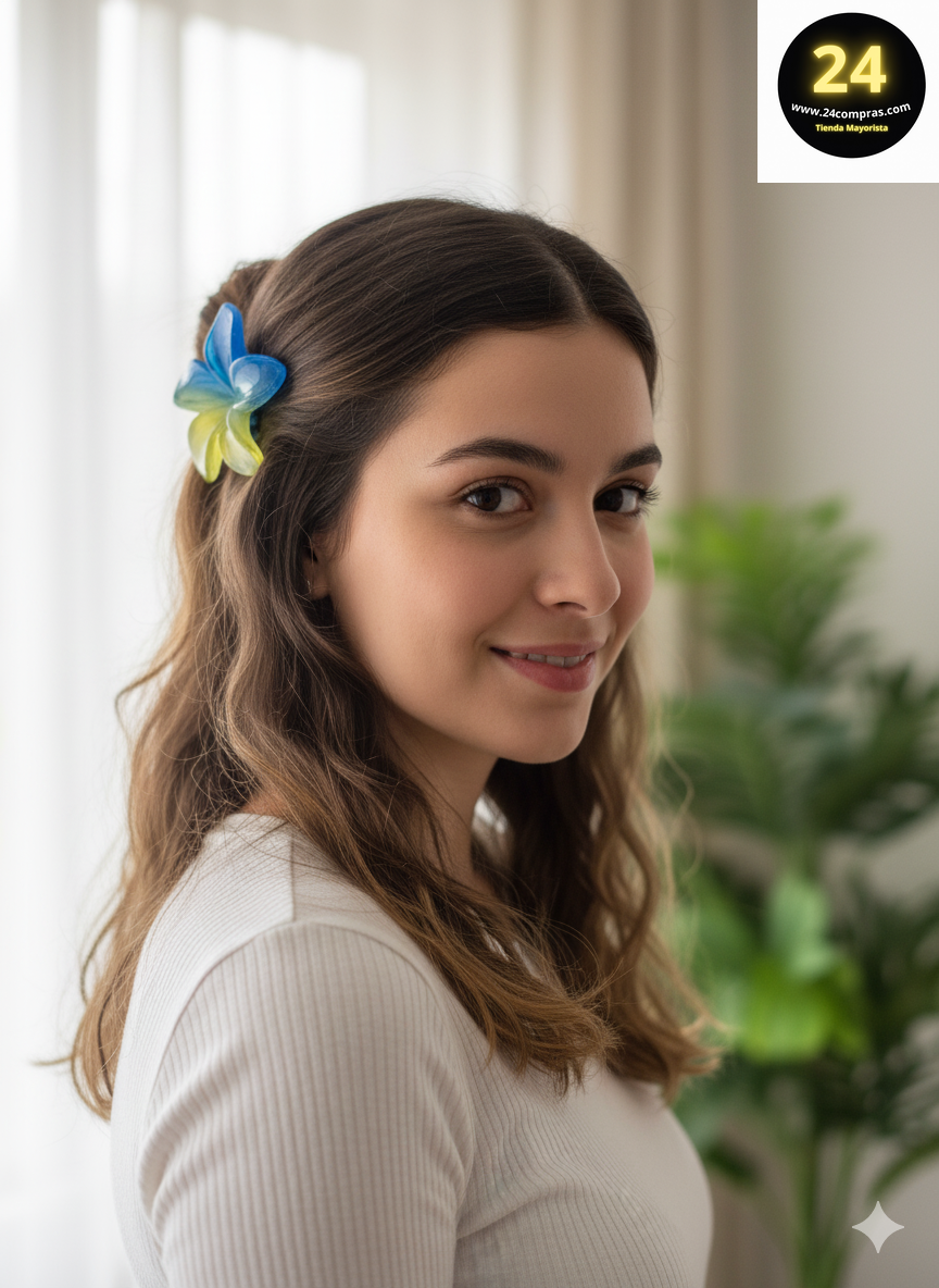 Estas elegantes pinzas en forma de flor destacan por sus vibrantes combinaciones de colores en efecto degradado, que aportan un toque alegre y sofisticado. Fabricadas en material resistente y brillante, cuentan con pétalos delicadamente moldeados que imitan la belleza de una flor real. Su diseño no solo es decorativo, sino también funcional, ofreciendo una sujeción firme y segura para diferentes usos: desde organizar objetos hasta complementar proyectos creativos. Con su variedad de tonos y acabados, son el accesorio perfecto para añadir estilo y frescura a cualquier espacio o actividad.