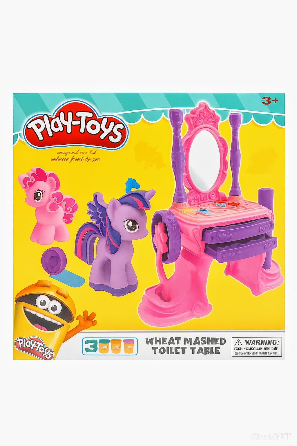 ¡La diversión creativa está garantizada! Este increíble set de Play-Toys incluye una mesa de juegos con accesorios y moldes para que los niños creen y decoren sus propios ponys con plastilina de colores.