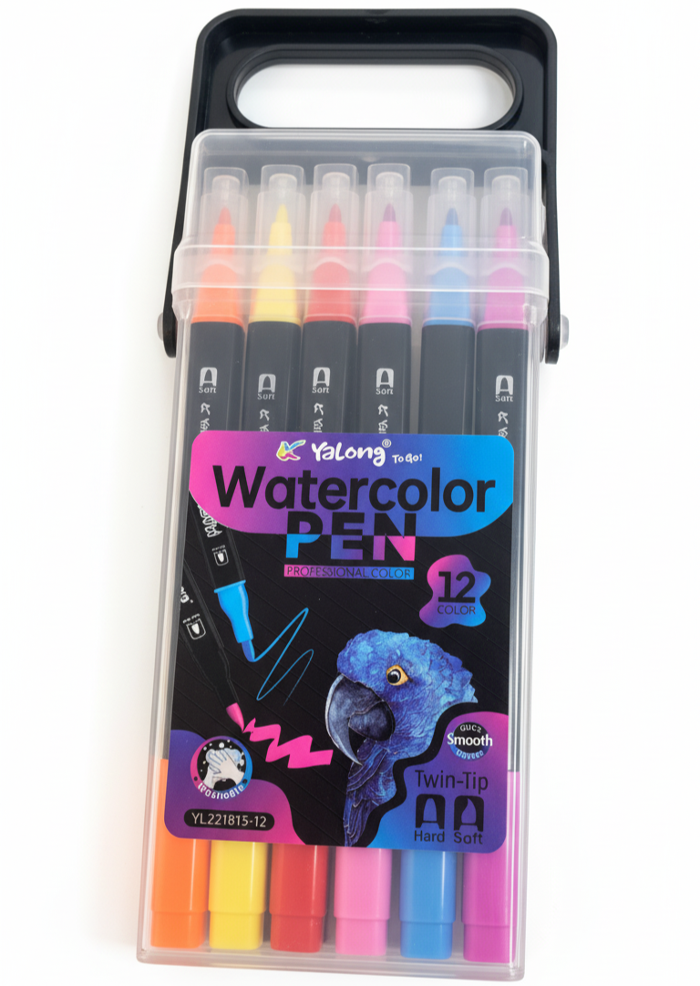 PLUMONES WATERCOLOR PEN YALONG TWIN TIP 12 COLORS YL221813-12